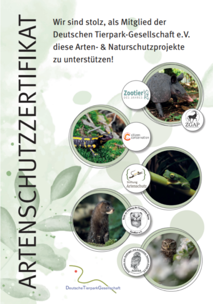 Die Stiftung Artenschutz ist eine Initiative von Zoos, Tierparks und Naturschutzorganisationen mit dem Ziel, existenziell bedrohte Tierarten und ihre Lebensräume zu schützen. Die Deutsche Tierparkgesellschaft unterstützt insbesondere den „Amphibien-Fonds“, der weltweite Schutzprojekte für hochbedrohte Amphibien fördert.
